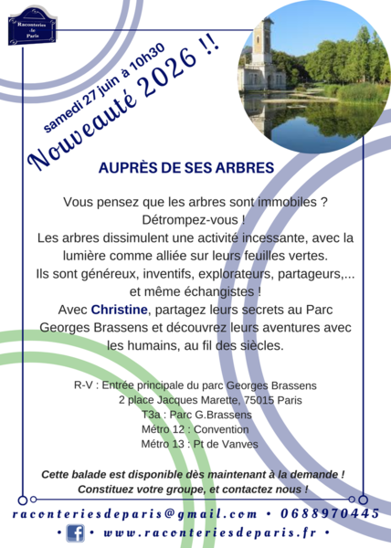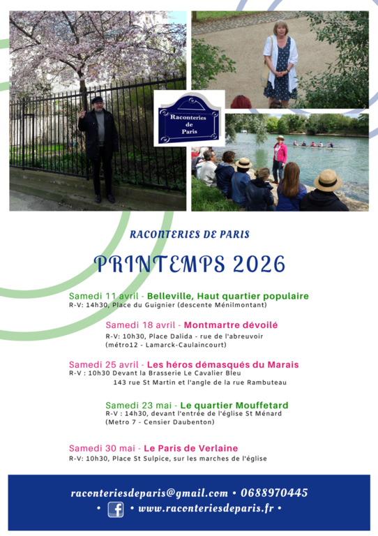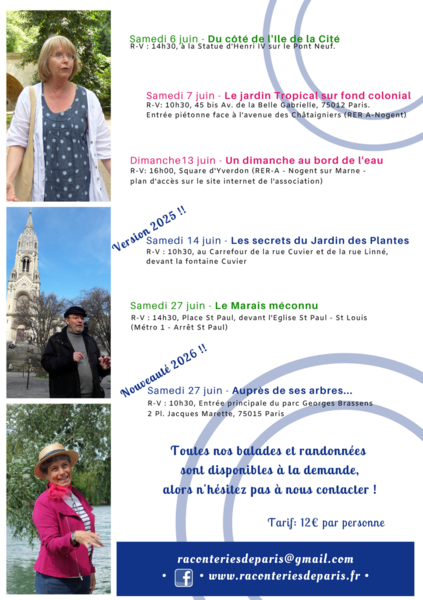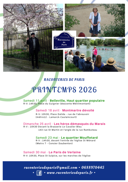 Des donées à caractère personnel vous concernant sont susceptibles d'être collectées et traitées informatiquement. Pour l'exercice de vos droits ou tout renseignement complémentaire, veuillez contacter l'association : raconteriesdeparis@gmail.com