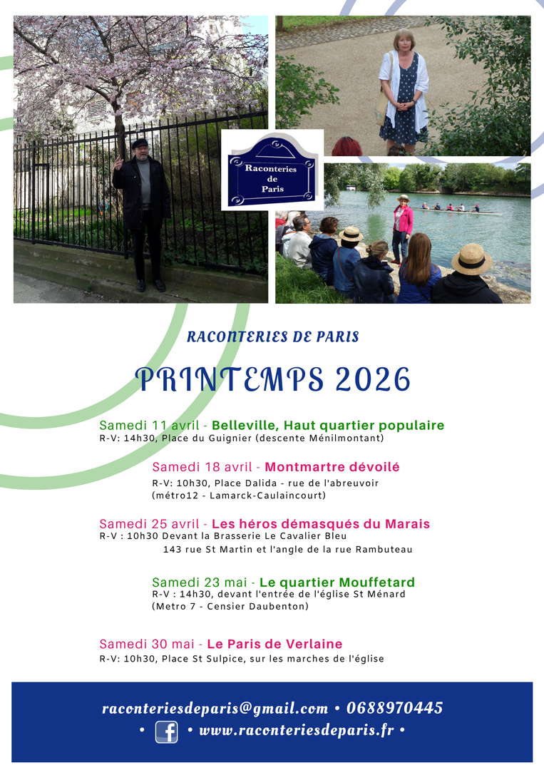 * Les Raconteries de Paris vous proposent de décliner les balades contées en salle pour permettre aux moins mobiles d'entre nous de profiter des histoires et légendes qui ont fait de Paris et de ses environs, ces lieux que nous aimons tant !